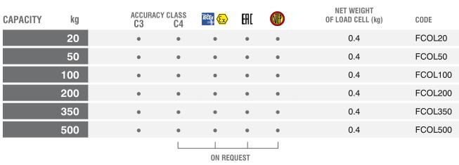 FCOL Bending Beam Load Cells?TECHNICAL FEATURES