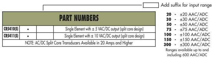 CR5410S AC/DC Hall Effect Current Transducer PART NUMBERS