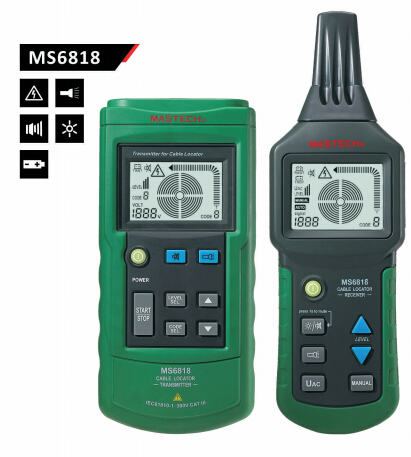 The MASTECH MS6818 Underground Wire Cable Metal Pipe Locator Detector Tester consists of a signal transmitter and a receiver, widely used in the construction and maintenance of communication cables, power cables, metal pipes, and much more. Current and voltage conducting cables, electrical circuits, conduits, water and heating pipelines, fuses, switches can all be located. Short circuits and interruptions of assorted lines and cables can be detected. Even better, the detection is possible not only underground but also in walls and concrete.