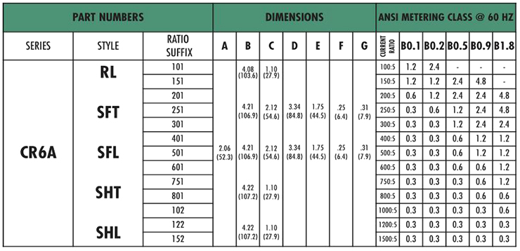 ANSI Metering Class Current Transformers - CR6A