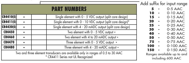 CR4470 Average RMS AC Current Transducer PART NUMBERS