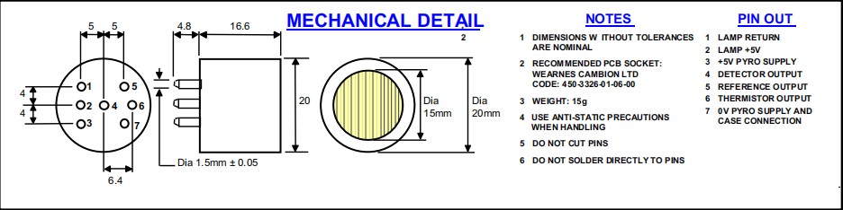 compensated pyroelectric infrared detector and an integral thermistor to monitor the internal temperature. The infrared