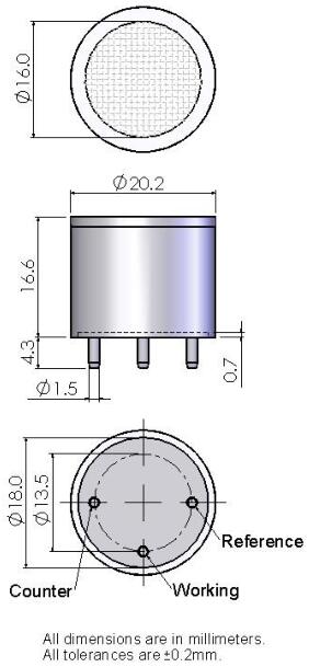 4-CH3SH-10 Methyl Mercaptan Sensor Outline Dimensions