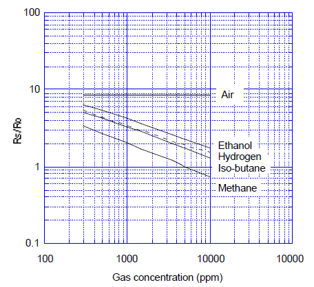 reverse side of this sheet). The Y-axis is indicated as sensor resistance ratio (Rs/Ro) which is defined as follows: