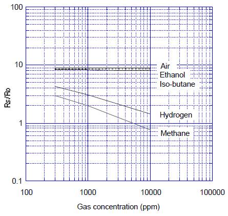 TGS2611-E00 uses filter material in its housing which eliminates the influence of interference gases such as alcohol, resulting in highly selective response to methane gas. This feature makes the sensor ideal for residential gas leakage detectors which require durability and resistance against interference gas.