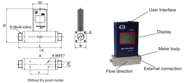 MF5000 series Gas Mass Flow Meters Mechanical Dimensions