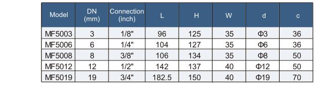 MF5000 Series have 5 designs, with model number:MF5003/MF5006/MF5008/MF5012/MF5019.