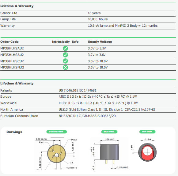 High Sensitivity Gas Sensor PID VOC OEM Gas Sensor MiniPID 2 HS Description: