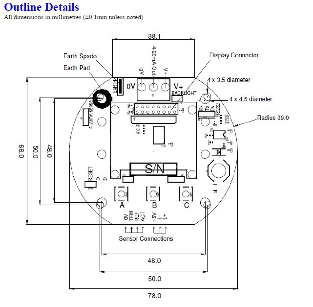 The Cirius X OEM 4-20mA transmitter is an extremely flexible transmitter for NDIR gas sensors providing a robust linear 4-20mA output in response to signals from standard NDIR gas sensors. All sensor driving, signal extraction and linearisation is performed on-board with calibration and configuration accessed by a menu driven sequence using 3 pushbuttons or via the RS232 port. The 2-line LCD display shows the gas concentration and units under normal operation, fault diagnostics under fault conditions and interactive text under pushbutton operation for calibration. The pushbuttons are disabled if the display is removed, enabling tamper-proof running. Sensor connections to the Cirius X are made by 3-way and 4-way crimp EH connectors, segregating the sensor supply from the signal lines. Connections for the input power and 4-20mA source output are via screw terminals and an earth spade terminal is provided along with an earth bonding pad for ease of earth connections.