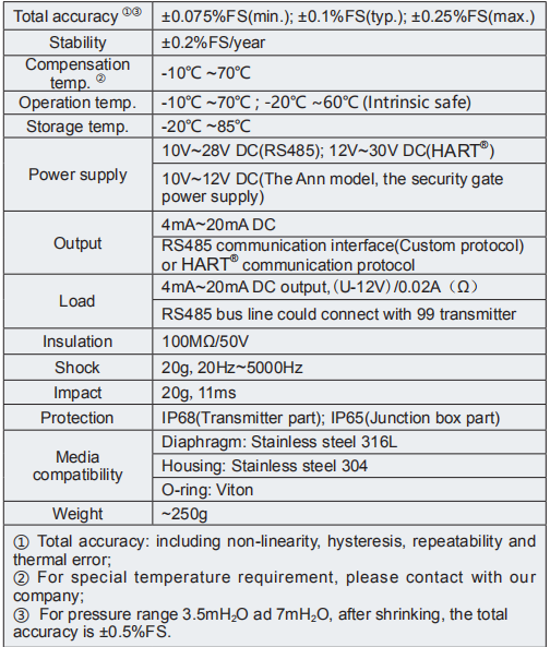 2.For the other pressure range between min.range and max.range, but not indicated on the above table, we enlarge the above basic pressure range to produce (overpressure unavailable).
