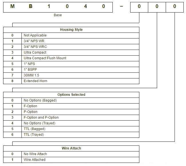 All part numbers are a combination of a six-character base followed by a dash and a three-digit product code. Please review the following table for more information on the three-digit product code.