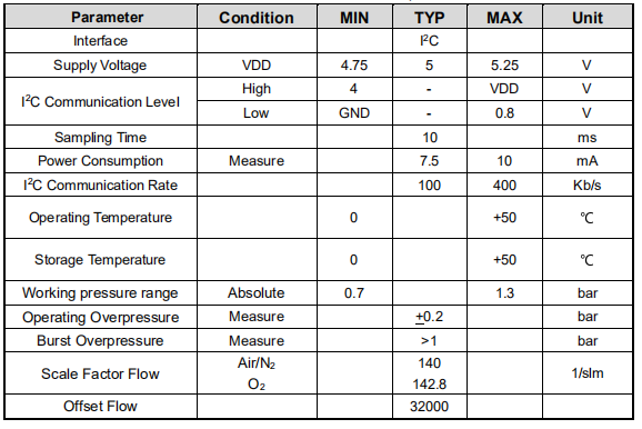 Electrical characteristics,such as sleep power consumption, measurement power consumption, etc., all depend on the power supply.The table 3 details the electrical characteristics of AFM3000.If not marked, it means that the power supply voltage is 5V.