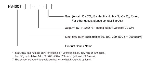 FS4001 MEMS Mass Flow Sensors Product Selection