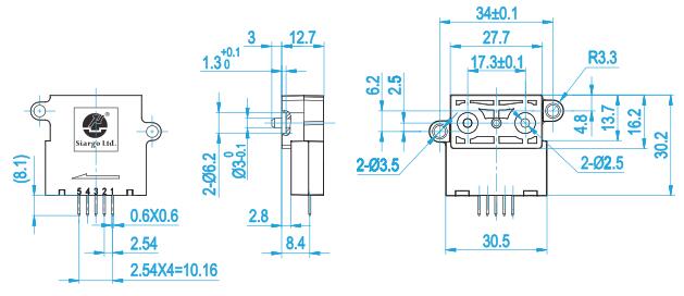 FS5001L series Mass Flow Sensors Mechanical Dimensions