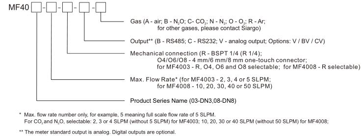 - MF4008: 0 ~ 10, 20, 30, 40, 50 SLPM