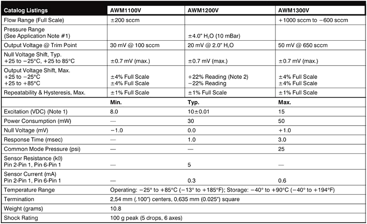 Microbridge Mass Airflow/Unamplified Sensors - AWM1000 Series
