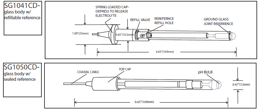 Glass body electrodes have RUGGEDIZED pH bulbs that have hemispherical shapes. They are more resistant to breakage than spherical bulbs and can be used in a wide range of non-slurry applications.