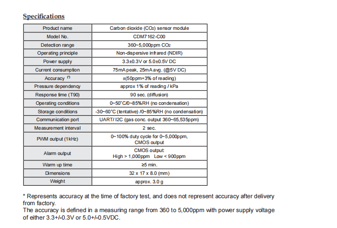 Pre-calibrated NDIR CO2 Module?CDM7162-C00?Technical Specification:
