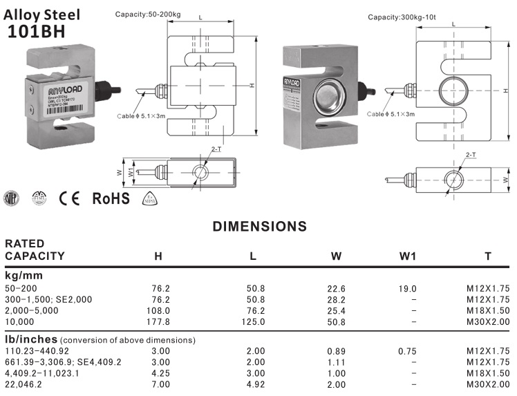 101BH S-Beam Load Cell Specification