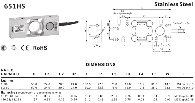 651HS Single Point Load Cell?Specification