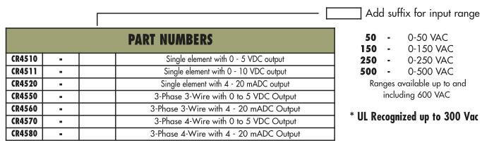 CR4560 True RMS AC Voltage Transducer PART NUMBERS