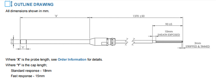 Zirconia O2 Sensors Screened Probe Series  Long Housing O2S-FR-T6 Specifications:
